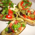 Скоро потеплеет и начнется сезон пикников - шашлыки, свежие овощи и печеная картошка))) Вот тогда-то и пригодится вам этот рецепт. Англичане основу таких лодочек называют "potato skins" - картофельные шкурки. "Шкурки" эти можно наполнить овощами, мясом, рыбой, морепродуктами, сыром, ветчиной... Выглядит нарядно, собирается, как конструктор, поедается с аппетитом, к тому же такие закуски на один зубок - модная тенденция в последнее время. Значит, будем модничать)))
