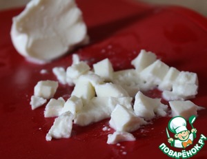Кубики с крышками приготовить на пару в течение 5-7 минут до мягкости. Просушить. Кубики заполнить моцареллой и сверху посыпать солью и специями (у меня следующая смесь: кориандр, куркума, имбирь, паприка, чеснок, перец черный, гвоздика, перец красный).