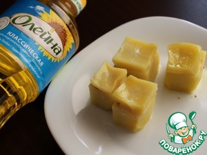 Закрыть кубики крышками. Смазать крышки и кубики по внешней стороне подсолнечным маслом.