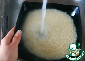 Несколько раз промываем рис до того, как вода в чашке станет прозрачной. Оставляем рис в чашке с водой на 10/15мин.