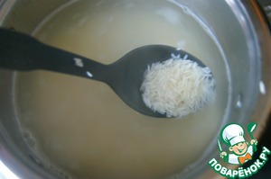 Варим рис на большом огне 5/10мин, добавляем соль.