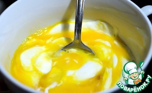 Для заливки смешать яйца, сметану и орегано. Посолить, поперчить.