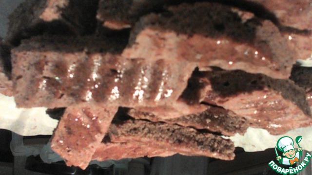 При желании можно полить глазурью из столовой ложки кефира и чайной ложки сахарной пудры, а сверху нанести кисточкой тонкий слой шоколадной глазури. У меня по рецепту Http://www.povarenok .ru/recipes/show/588 34/ на треть порции