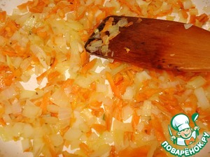 Обжариваем на сковороде на растительном масле лук с морковью и чесноком.