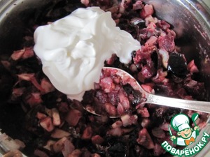 Рецепт «Свекольные пирожные с грибами и черносливом»: