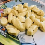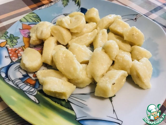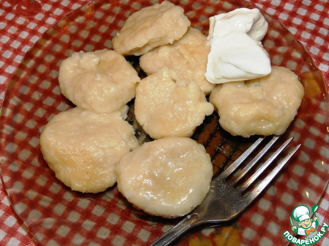 Творог лучше брать не сильно влажный, иначе понадобится много муки, что портит вкус.