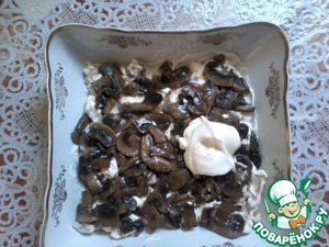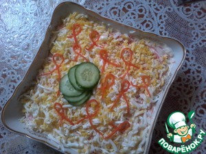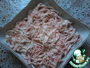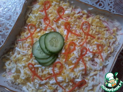 Закрываем все острой морковью с майонезом, засыпаем яйцом, натертым на крупной терке