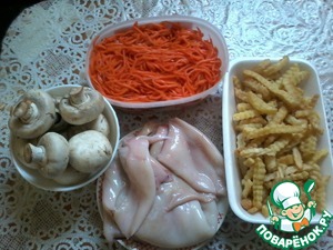 Сытный и сочный салат с кальмарами и морковью "по-корейски". Отличное начало для обеда.