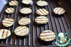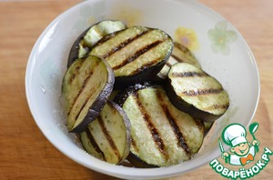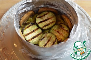 Пока каша еще горячая, выкладываем 3 столовых ложки каши, на кашу выкладываем грилованные баклажаны, и так несколько слоев. Подавать кашу только в остывшем виде. В холодильник убирать не обязательно, форму хорошо держит и без охлаждения в холодильнике!