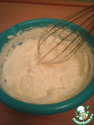 Охлажденные сливки взбить с сахарной пудрой до устойчивых пиков (3-4 минуты).