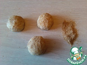 • Теперь обминаем тесто и разделываем его на маленькие шарики - размером с яйцо (+/-)