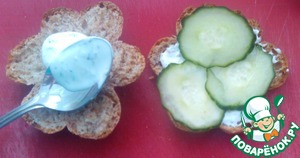 • Смазываем соусом и кладем ломтики огурца