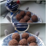 Конфеты я приготовила специально для своей сестры. Ведь человеку, соблюдающему диету, нужна поддержка. Так зачем дразнить калорийными сладостями, если есть вкусная и полезная альтернатива!?!? Кстати, эти конфеты с удовольствием ели все гости без исключения!