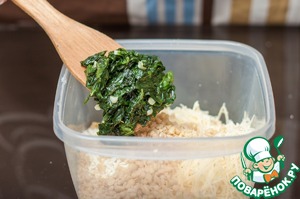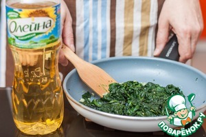 ... и шпинат. Перемешать, попробовать, выровнять на соль, перец