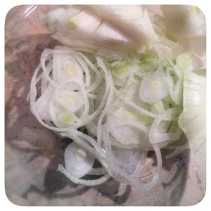 Режем лук тонкими кольцами.