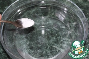 Наливаем воду, добавляем соль и соду перемешиваем.