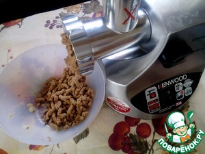 Картофель отвариваем в "мундире", тёплым очищаем и также прокручиваем через мясорубку