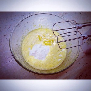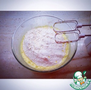 Затем, добавляем муку, разрыхлитель и взбиваем до однородности.