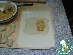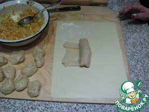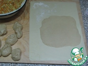 Формируем пирожки. Раскатываем тесто очень тонко.