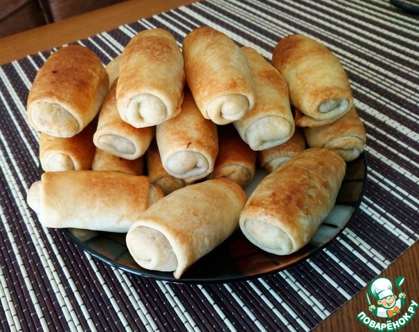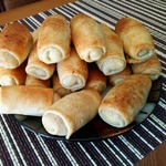 Очень вкусные пирожки с хрустящей корочкой, с капустной начинкой из простого теста на воде. Начинка имеет традиционно сладковатый вкус. Рецепт почерпнула сегодня утром, у своих друзей в Одноклассниках. Автор моя подруга назвала их "Сигары", я бы попроще трубочки.