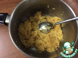 Начинка: яблоки очищаем от кожуры, трем на терке, добавляем сахар, воду, лимонный сок и масло. Ставим на медленный огонь, и тушим пока не выпарится вся жидкость. Начинка должна полностью остыть