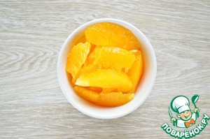 Моем апельсины. Чистим дольки от перегородок. Аккуратно, чтобы не выдавить весь сок.