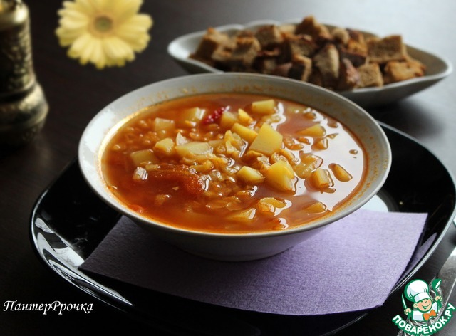 Насыщенный, согревающий, питательный и безумно вкусный суп! Томатная паста и специи придают ему красивый цвет и незабываемый аромат... Просто пальчики оближешь!