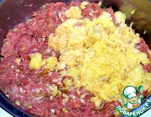 Картофель натёрла на мелкой тёрке и добавила в фарш.