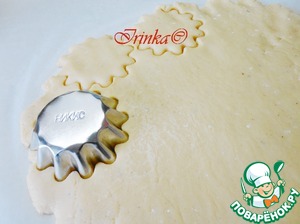 Духовку включаем на 190 градусов. Часть теста раскатываем на бумаге для выпечки, толщиной в один см, и формочками вырезаем из него коржики.