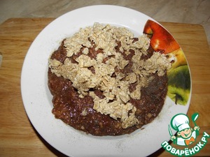 Овсянку отжать от молока, и добавить к фаршу. Посолить, поперчить