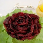 Вы можете использовать любой сыр. Если сыр твердых сортов, тогда необходимо заранее разрезать на квадратики и совместить, чтобы была возможность выложить лепесточки в виде розы.