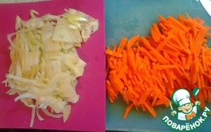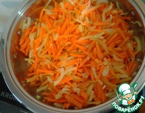 Туда же добавляем морковь. Всё это пассируем мин 10. -