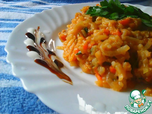 Можно делать сразу в казане или кастрюле, а еще можно в мультиварке. Но я вначале пассировала всё в сковороде, потом переложила в кастрюлю.