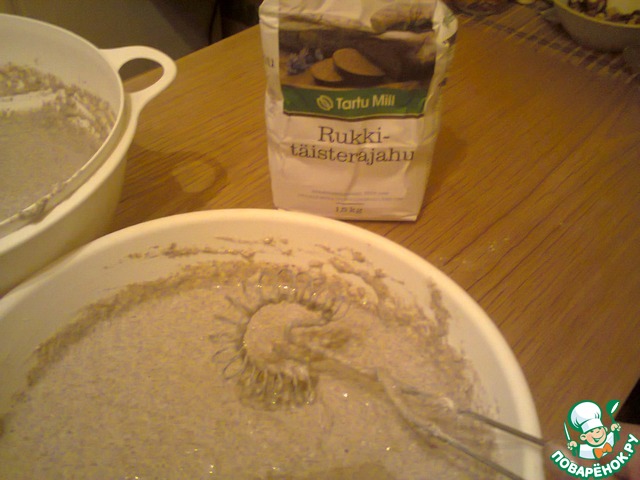 - Мука ржаная ( Я использую цельнозерновую ржаную муку тип 1800.) — 1,5 кг