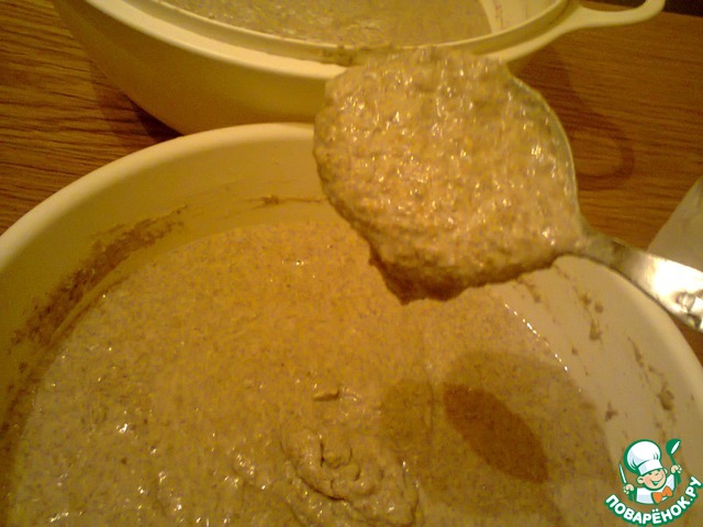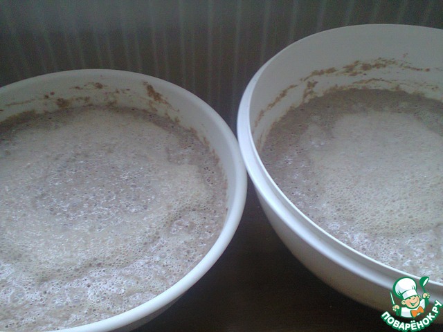 - Закваска ( На это количество муки пойдёт 5 столовых ложек с горкой закваски.) — 5 ст. л.