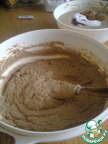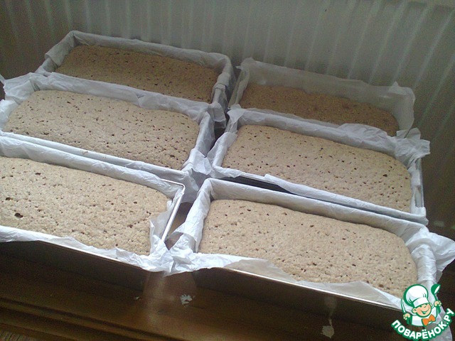 Готовое тесто выкладываем в формы, наполняя их примерно на половину. Тесто в форме надо разгладить ложкой обмакивая её в стакан с водой. Так выглядит не разглаженное тесто и тесто готовое для расстойки.