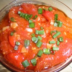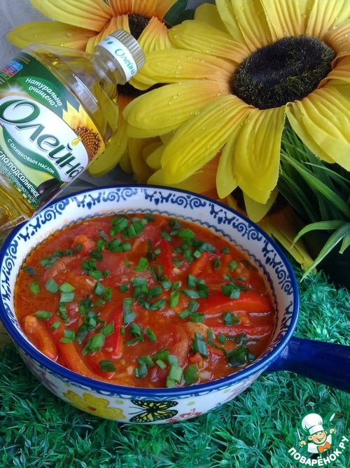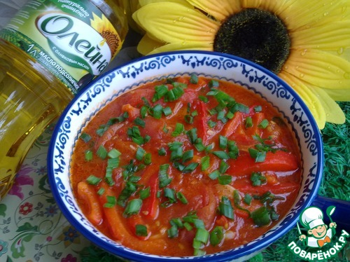 Очень вкусная закуска. Лучше всего для нее подходят сочные и мясистые красные сладкие перцы и плотные помидоры. Возможно, кто-то и скажет: "Вкусно, но старО!", все может быть, спорить не буду, однако я хочу предложить вашему вниманию этот рецептик. Скорее, это просто напоминание. Закуска вкусна даже без гарнира, просто со свежим ржаным хлебом!