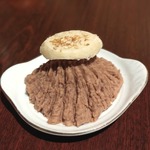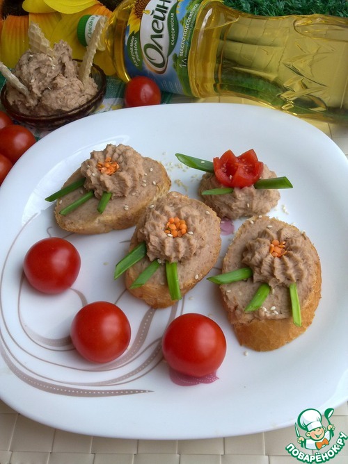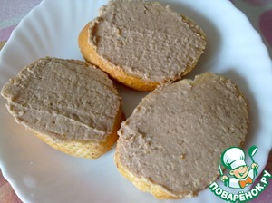 Подается паштет из фасоли на кусочках багета. Для этого нарезать и подсушить в духовке багет.
