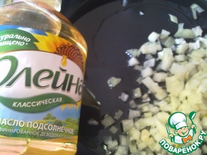 Репчатый лук мелко измельчить и слегка поджарить на подсолнечном масле "Олейна"