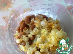 В вареную фасоль добавить поджаренный лук и измельчить в блендере.