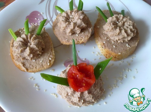 Затем намазать приготовленным паштетом кусочки багета.