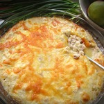 Выливаем наш соус в курицу, добавляем туда 1/3 натёртого сыра и всё перемешиваем. Хотелось бы заметить: в этом блюде чем больше сыра, тем вкуснее.