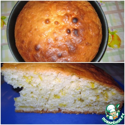 Готовность проверяем деревянной палочкой. Вынимая кекс из духовки, можно почувствовать запах подсолнечного масла, но он проходит как только кекс остынет.