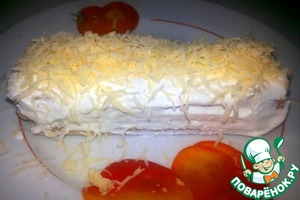 Распределяем остатки творожной массы по верху и по бокам нашего бутербродного тортика))