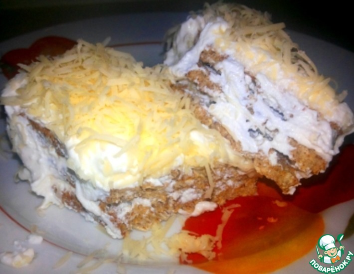 Сверху следующий хлебец, опять смазываем творожком. Повторяем процедуру. Я обычно делаю "трехэтажные".