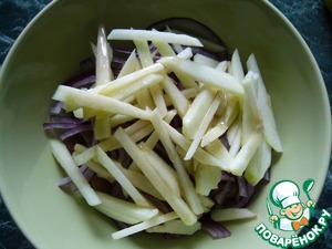 • Яблоко, очищенное от семян и кожуры, нарезать соломкой
