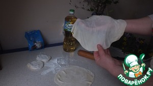 Готовое тесто делим на части и каждый кусочек смазываем маслом
