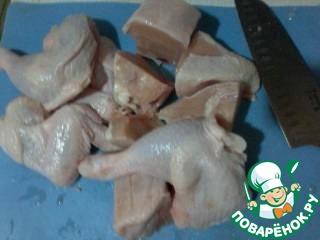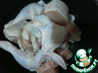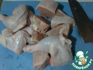 - Курица (можно заменить филе грудки, окорочками, бедрышками, голенью. Если использовать филе грудки, то время приготовления уменьшается) — 1 шт
