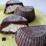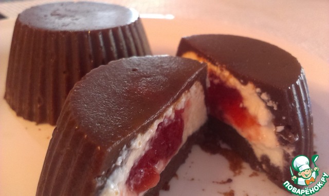 Когда шоколадная глазурь хорошенько "схватится" - заполняем формочки творожной начинкой.