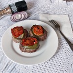 Сформовать 18 бифштексов и поместить их на противень застеленный пекарской бумагой и смазанный 1 ст. л. масла. В центр каждого бифштекса вдавить маслину.